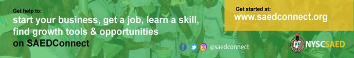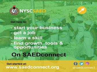 SAEDConnect is the official youth empowerment accelerator platform of the Skill Acquision and Entrepreneurship Development (SAED) Department of the NYSC that is designed to enable you access the full benefits of the SAED program from anywhere you are. It is packed full of information, programs. tools and solution to help you develop yourself, get a job, start and grow your business, learn new skills, find trainers and business partners near you, and more.